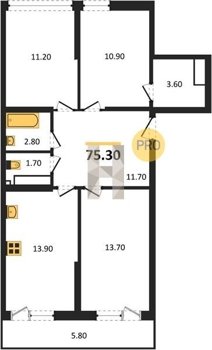 от 19.8 м2