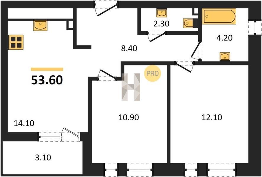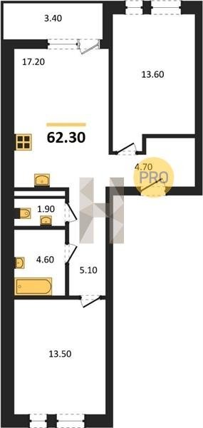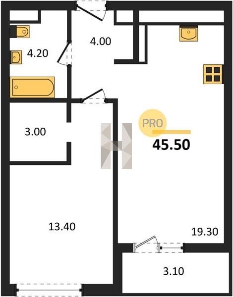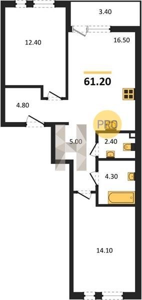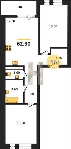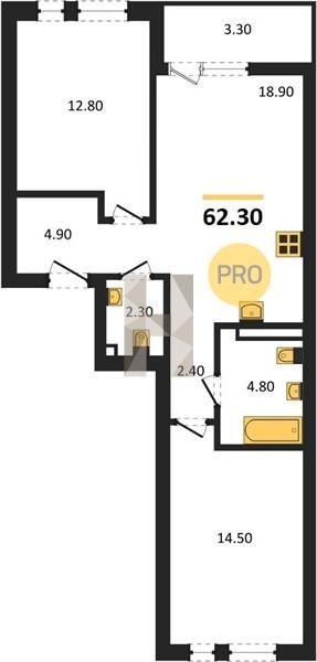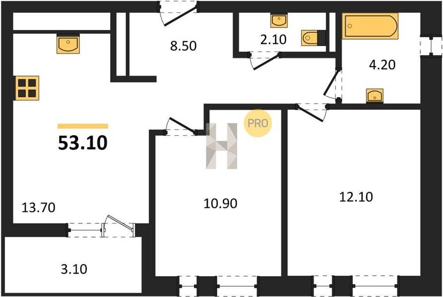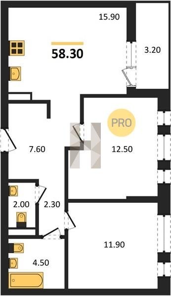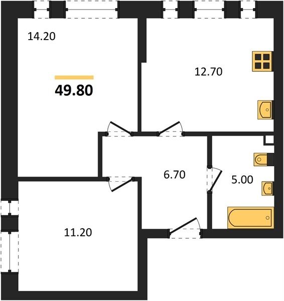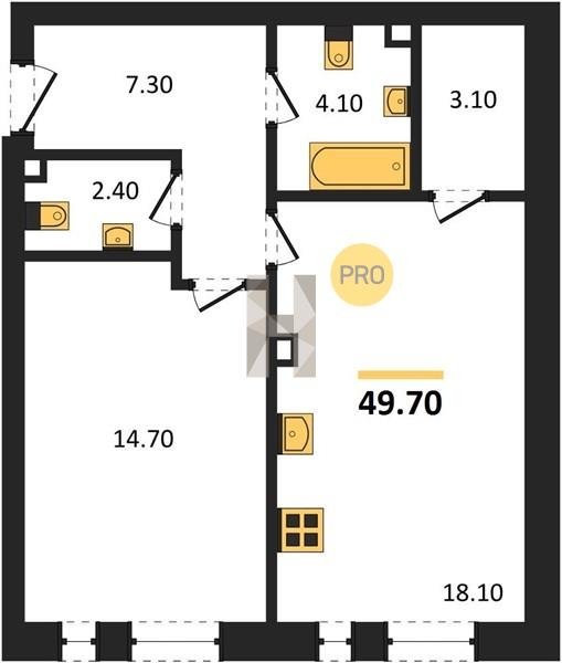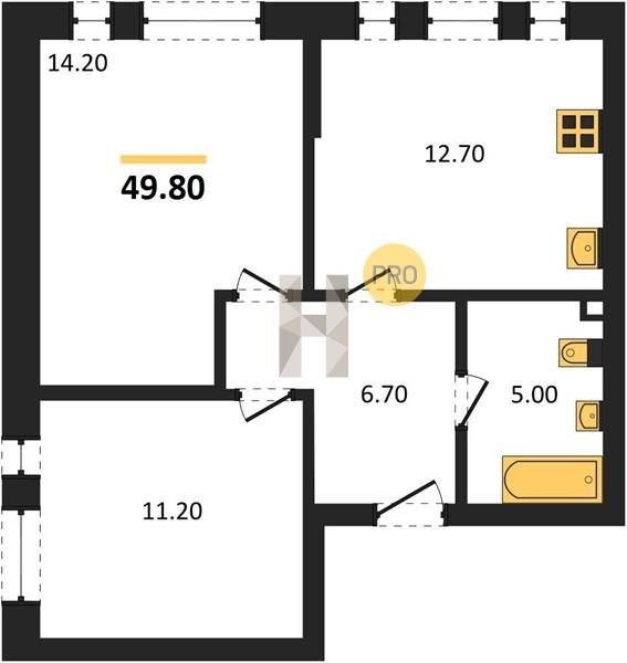 Площадь от 49.8 м2