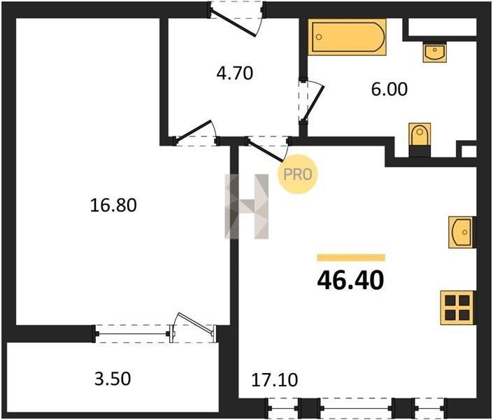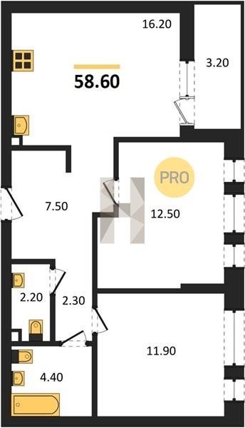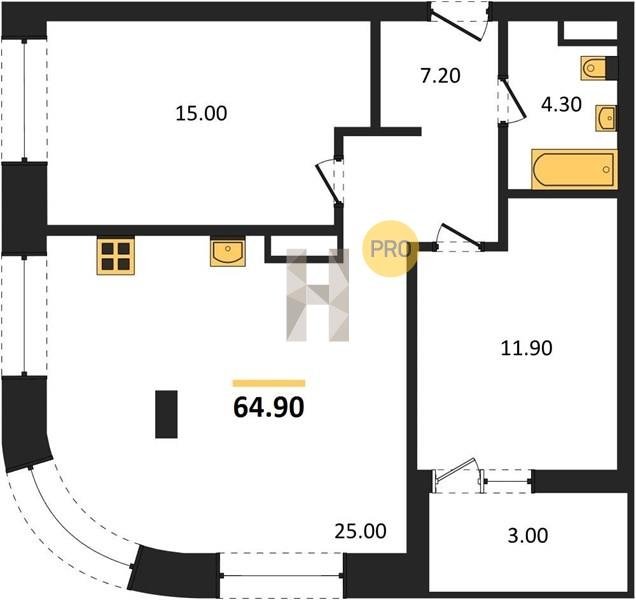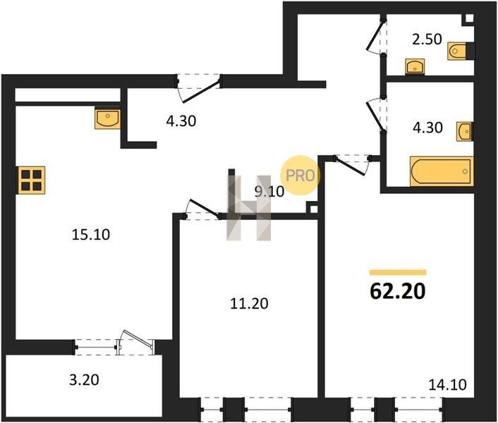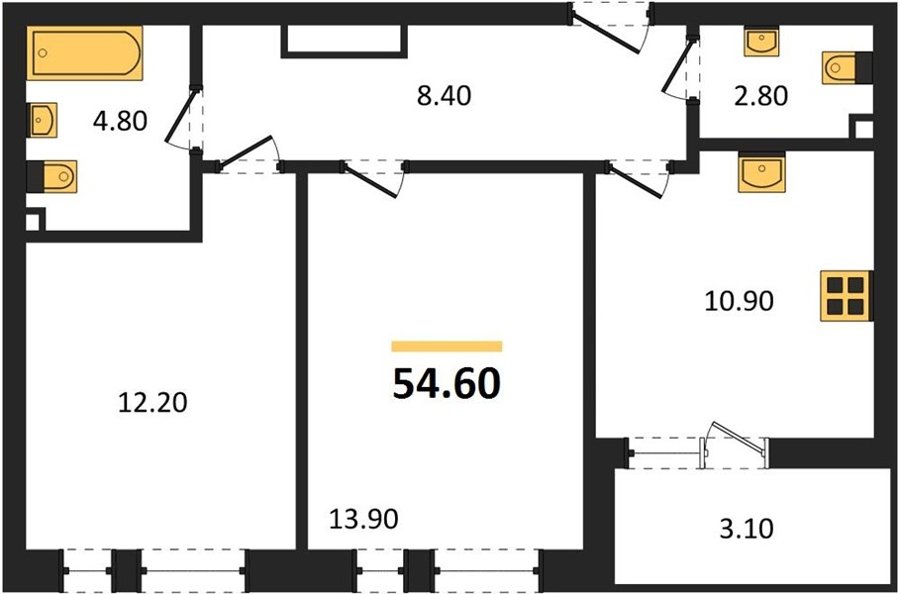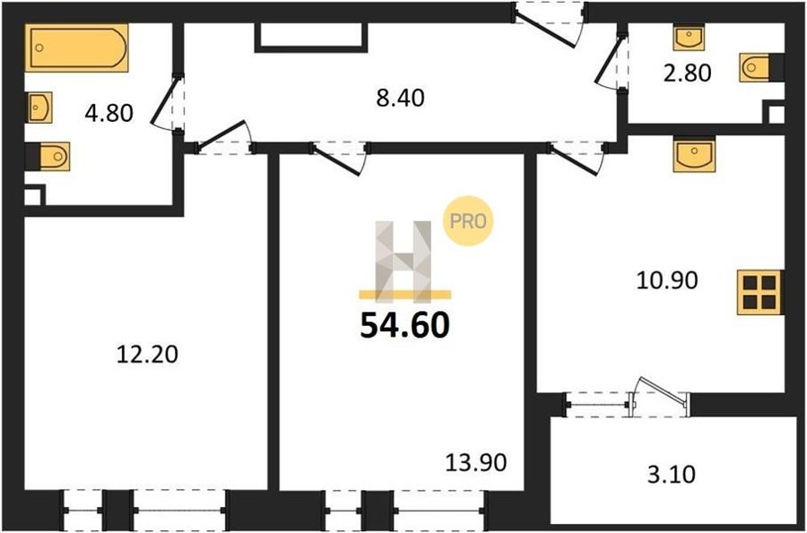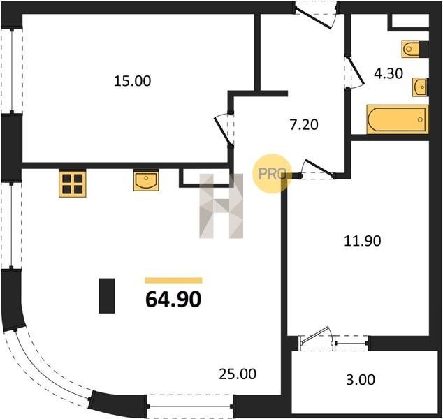 Площадь от 49.8 м2