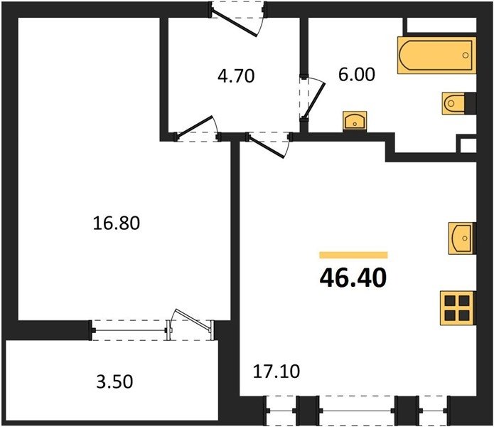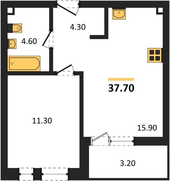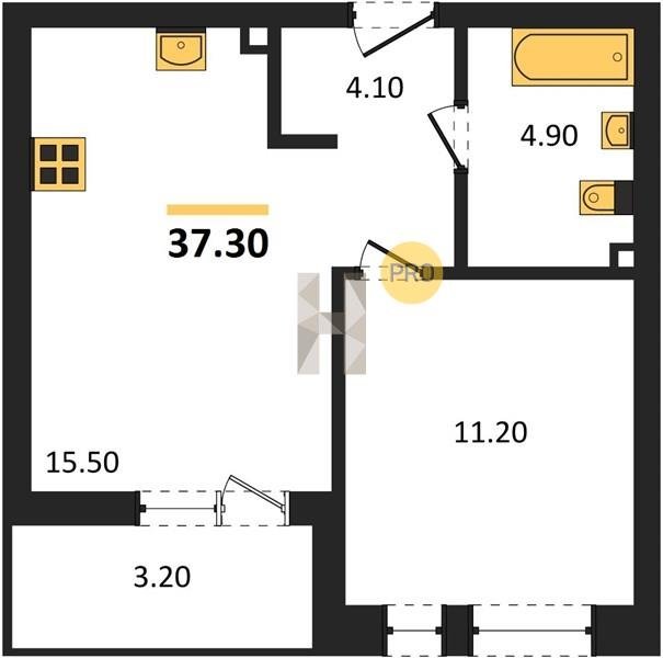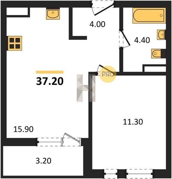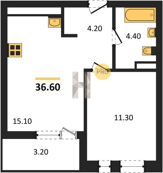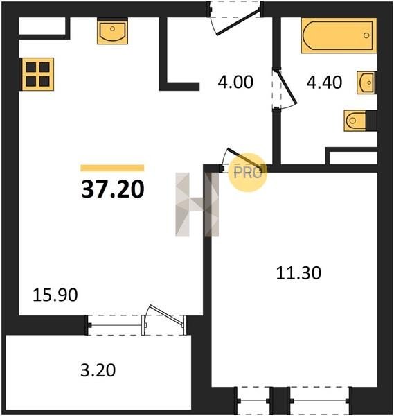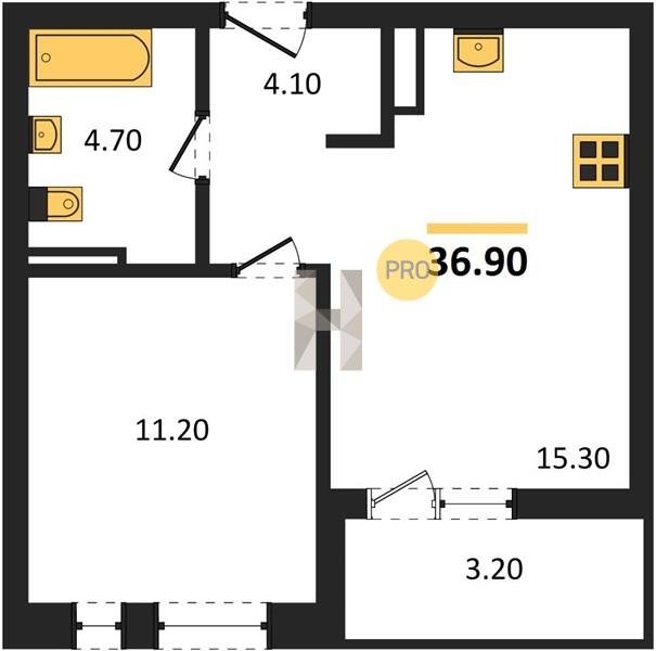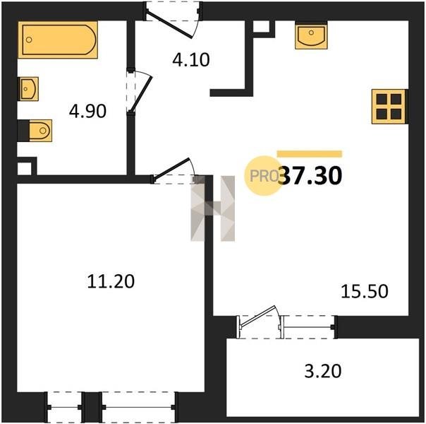 Площадь от 36.5 м2