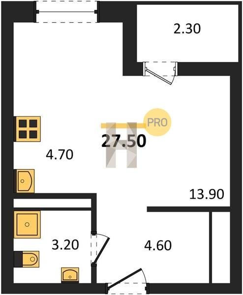 Площадь от 27.5 м2